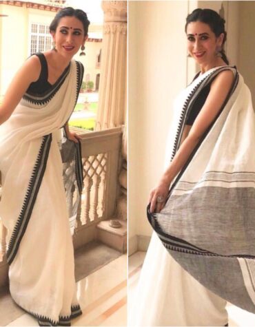 White Pure Linen Saree