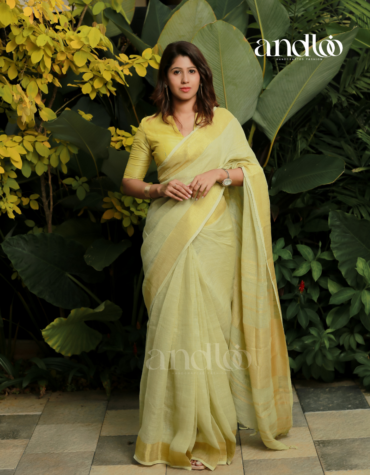 Yellow Pure Linen Saree