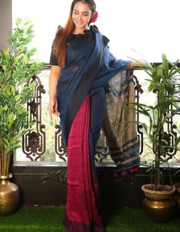 Dark Blue Pure Linen Saree