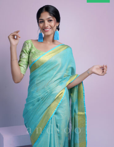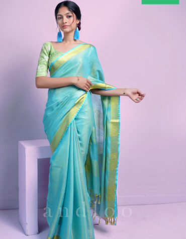 Blue Pure Linen Saree